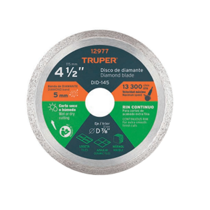 • Rin continuo, para cortes limpios, excelenteacabado sin despostillar.